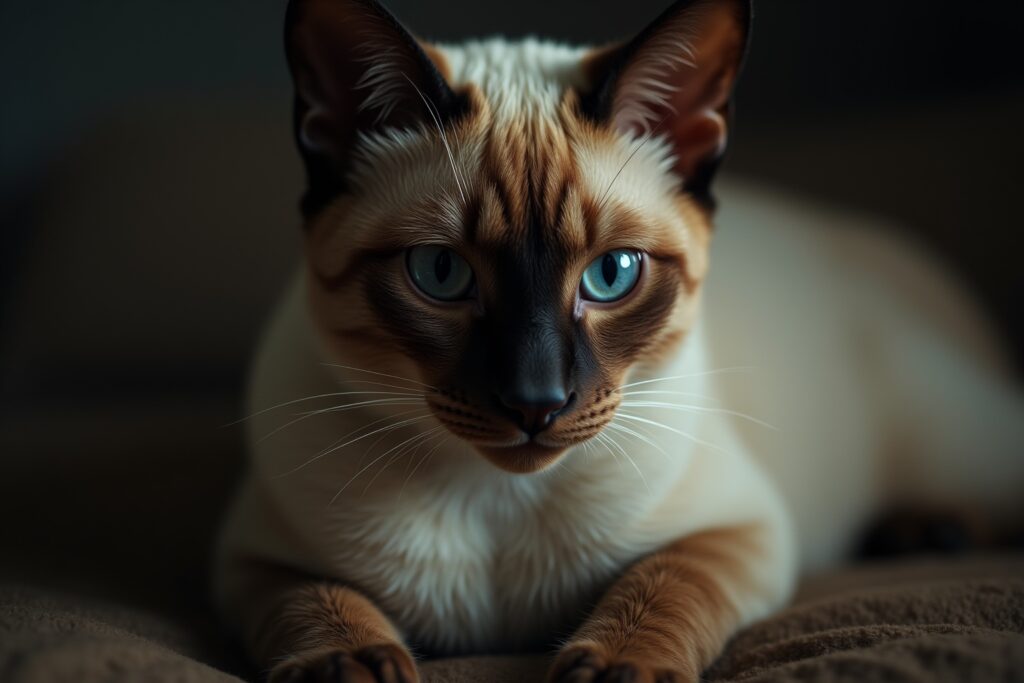 Les yeux bleus des Siamois sont une conséquence directe du gène d’albinisme partiel. Ce gène affecte la pigmentation de l’iris, donnant cette couleur azur caractéristique. Il est également la raison pour laquelle certains Siamois peuvent avoir un strabisme convergent (yeux qui louchent), bien que cela soit de moins en moins courant chez les lignées modernes.